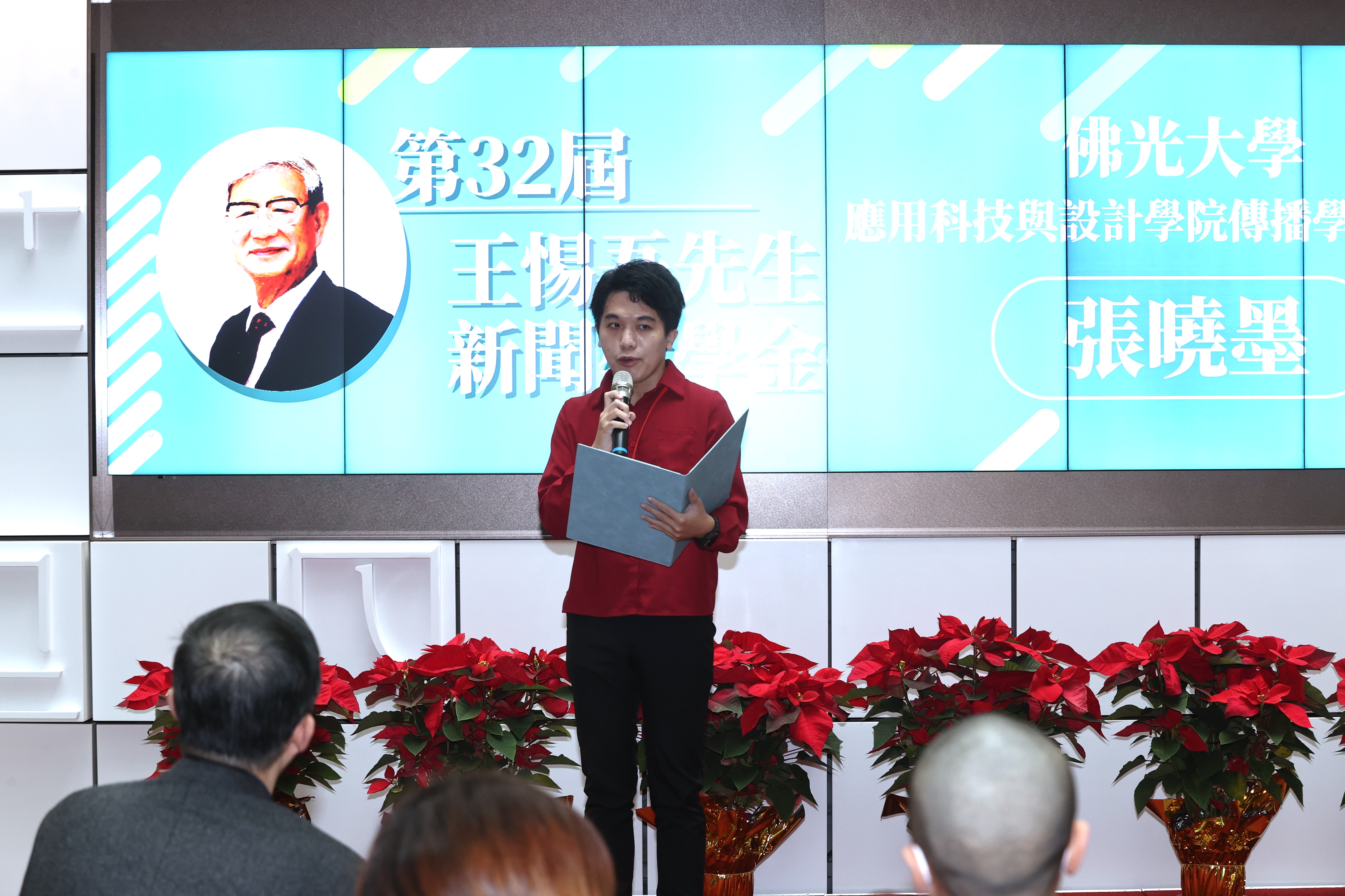 我是佛光大學應用科技與設計學院傳播學組碩士班的碩士生張曉墨。能獲得這份具指標性的王惕吾先生新聞獎學金,我感到無比榮幸。