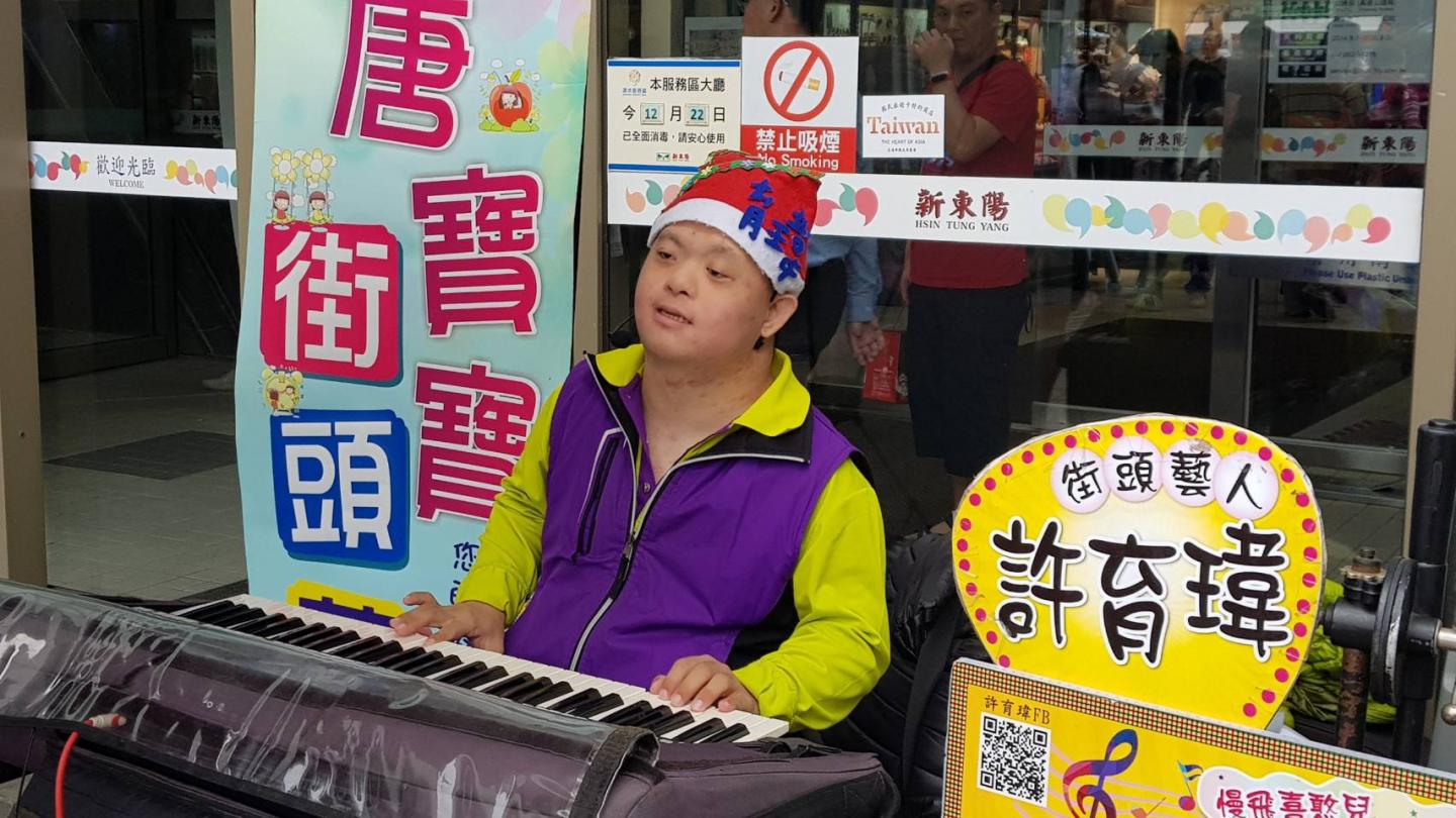 27歲的許育瑋是唐氏症孩子,伴隨中度智能與口語障礙,卻以電子陶笛、薩克斯風與電子吹管,走出屬於自己的音樂道路。高二即考取臺中市第一張街頭藝人證照,隨後陸續取得全臺20個縣市的街頭藝人資格。2012年總統教育獎、周大觀「熱愛生命獎章」、身心障礙楷模金鷹獎等肯定,見證他「慢飛不慢心」的堅持。