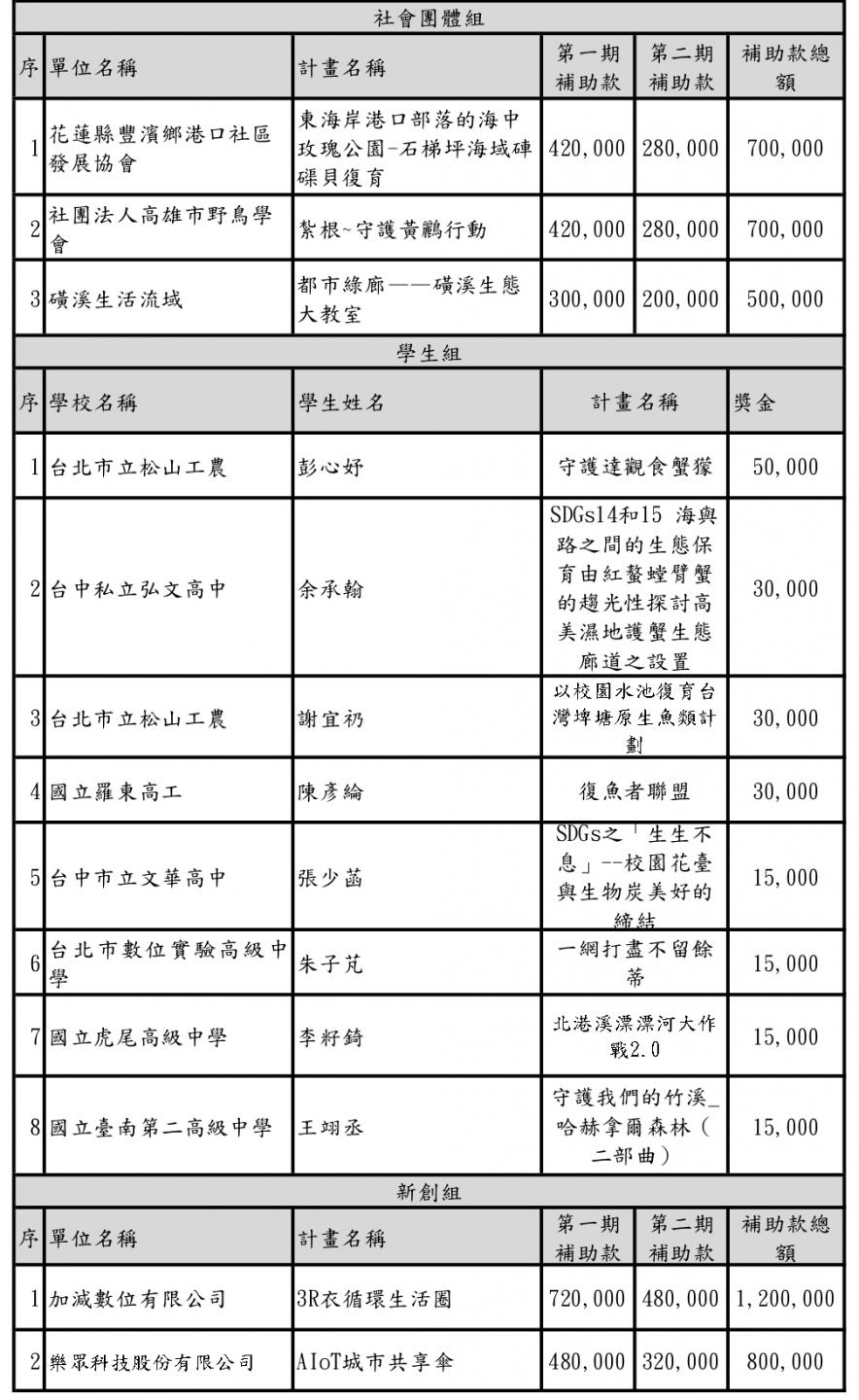 113年綠獎-獎助名單清冊