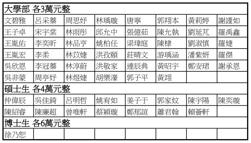 109年王惕吾先生紀念獎學金-獎助名單清冊