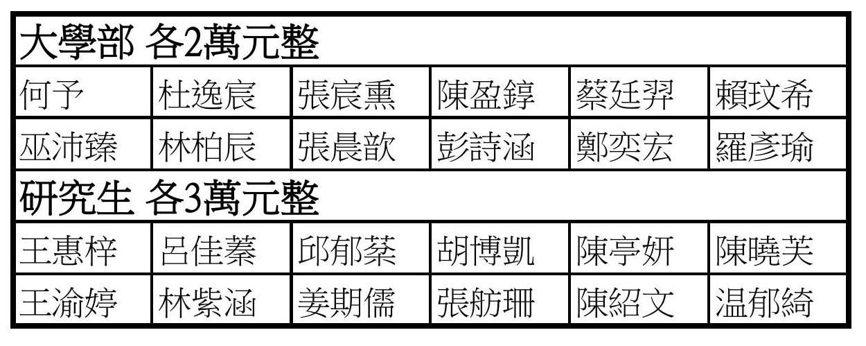 113年王惕吾先生紀念獎學金-獎助名單清冊